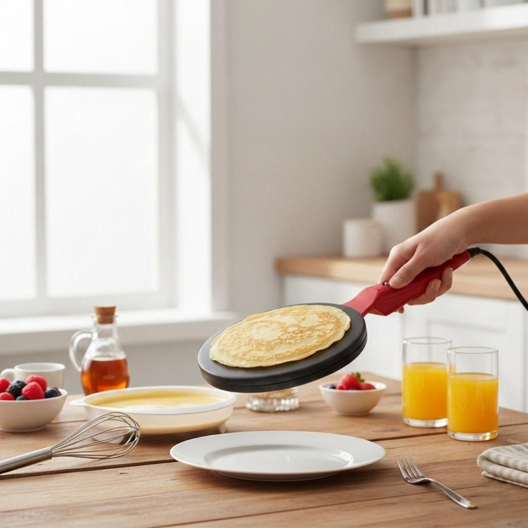 Introducing CrepeMatic – the revolutionary electric pancake maker that transforms breakfast into an effortless, delicious experience. With precision temperature control and non-stick technology, create perfectly golden crepes and pancakes every single time. Whether you're feeding your family or impressing guests, CrepeMatic delivers restaurant-quality results in minutes. Say goodbye to burnt edges and uneven cooking – enjoy consistent, fluffy perfection with every batch. Make mornings extraordinary.